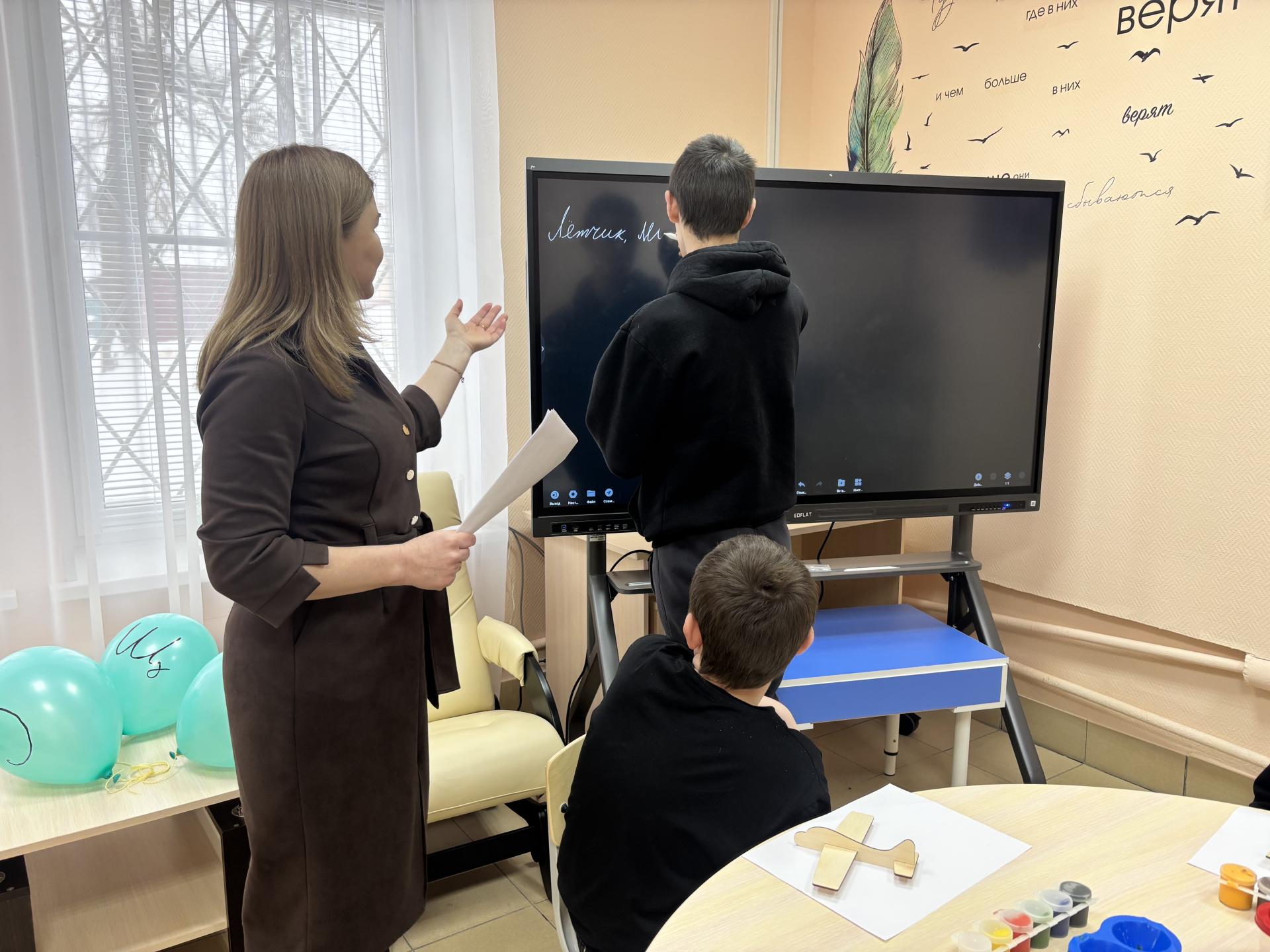 Началось мероприятие с увлекательного рассказа об истории возникновения праздника — Дня защитника Отечества и его значении. Продолжением стали увлекательные состязания: ребята активно разгадывали шифры и загадки, связанные с военными профессиями и званиями, соревновались в скорости составления правильных слов из воздушных шаров. Особенной частью испытания стала работа над деревянными моделями самолетов.