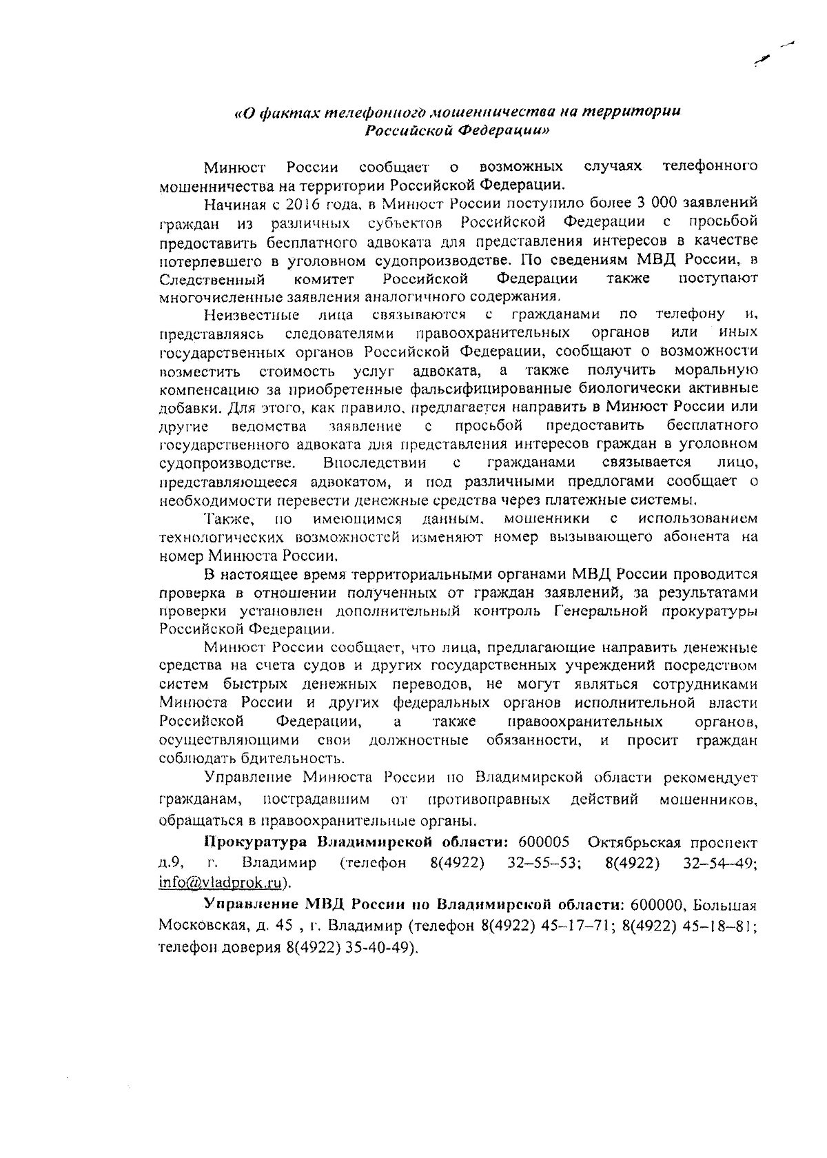 "О фактах телефонного мошенничества на территории Российской Федерации"