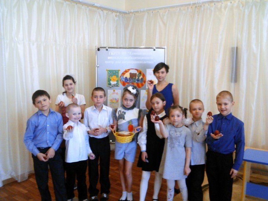 В стационарном отделении Камешковского СРЦН была проведена игровая программа «Светлое Христово Воскресенье». Дети с энтузиазмом участвовали в различных конкурсах: помогали пасхальному кролику вспомнить рецепт кулича, украшали яйца к празднику, раскручивали их юлой, искали на скорость в укромных местах. Мероприятие традиционно завершилось угощением. Ребята зарядились позитивными эмоциями и стали чуть ближе друг другу.
