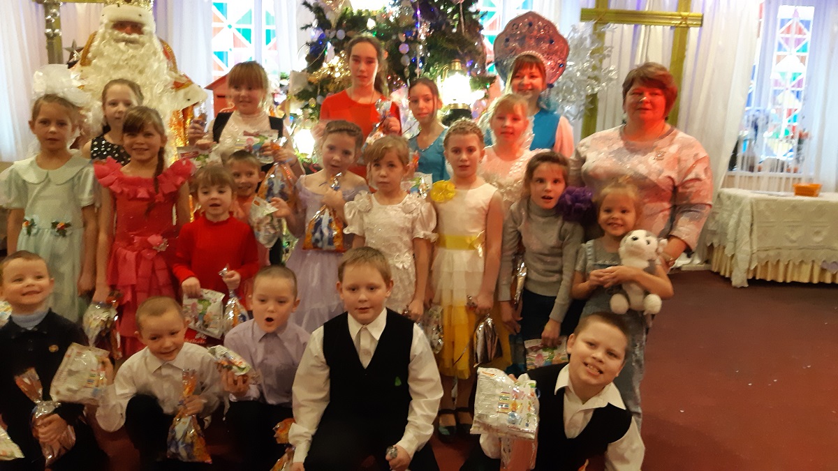 На прощание Дед Мороз вручил ребятам подарки, а Снегурочка угостила чаем со сладостями.