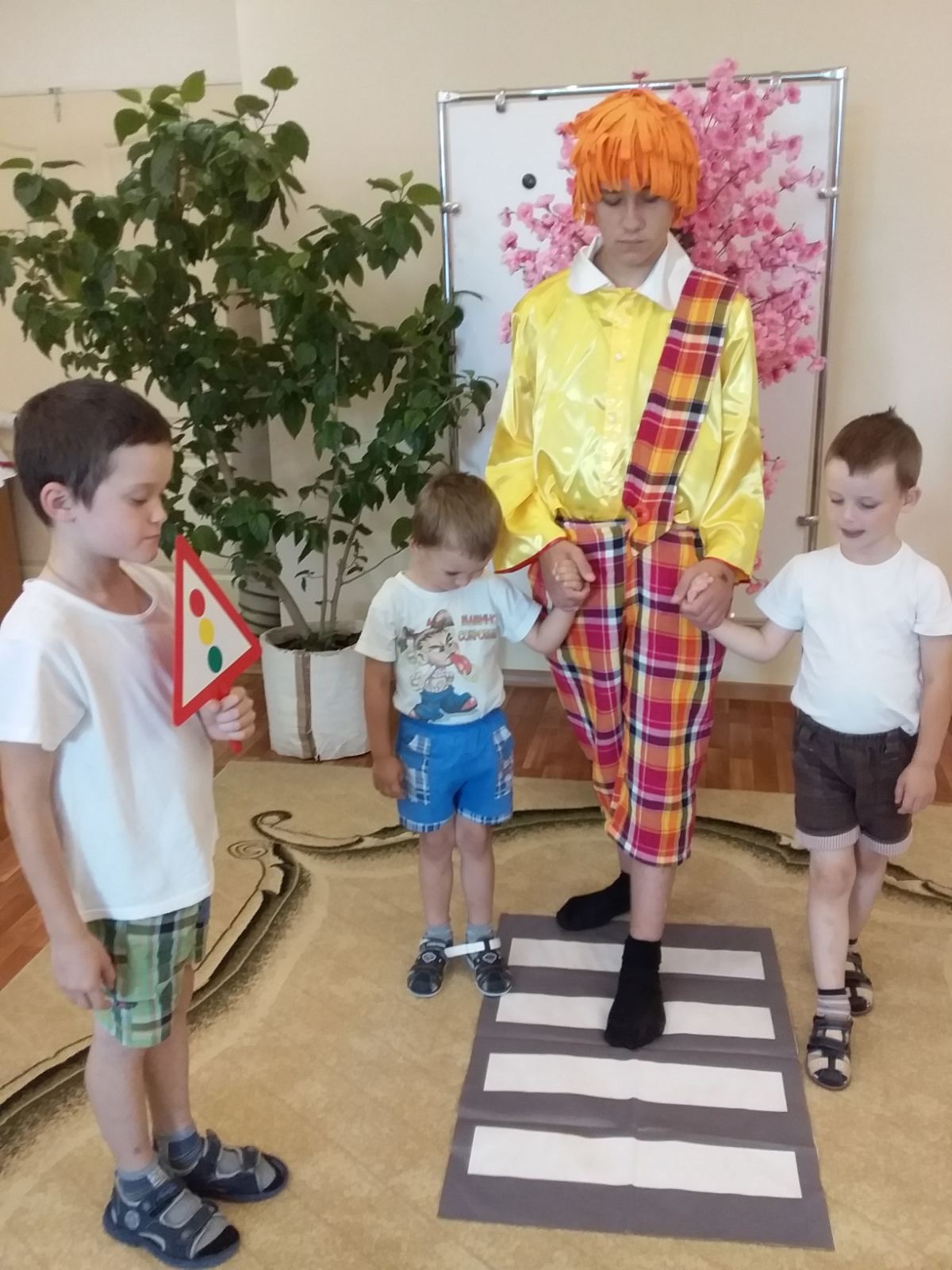 В гости к воспитанникам пришел Карлсон, который помогал ребятам вспомнить правила поведения на дороге. Дети в игровой форме закрепили знания о правилах дорожного движения, дорожных знаках, побывали и пешеходами, и пассажирами, и водителями.