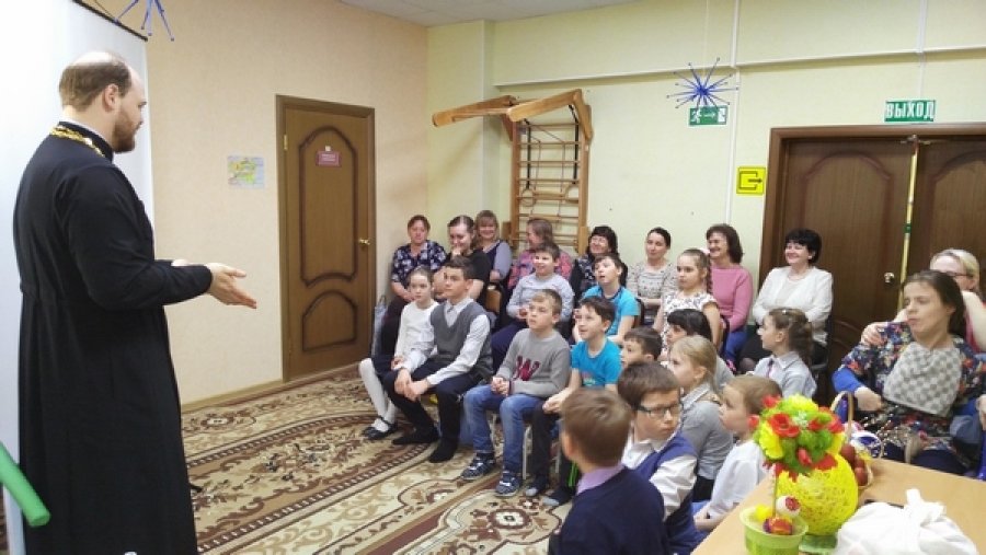 На этой неделе в отделении реабилитации детей с ограниченными возможностями Камешковского СРЦН состоялась встреча детей-инвалидов и волонтеров с отцом Андреем настоятелем Свято-Троицкого прихода села Горки. Дети посмотрели видеоролик «Пасха – что это за праздник». Волонтеры прочитали стихи о воскресении Иисуса Христа.