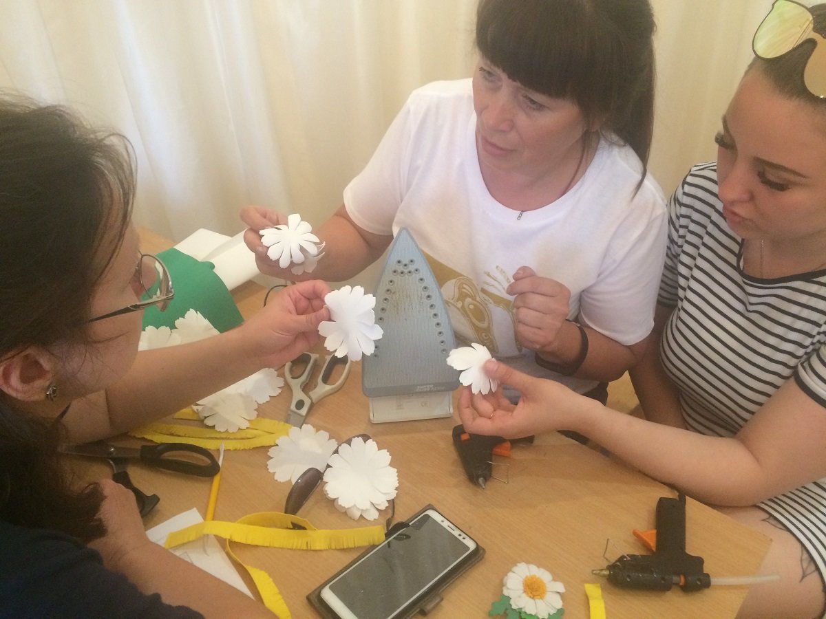 В завершении работы специалисты приняли участие в мастер–классе по изготовлению цветов из фоамирана, гофрированной бумаги и салфеток и мастер-классе по изготовлению игрушек из помпонов.